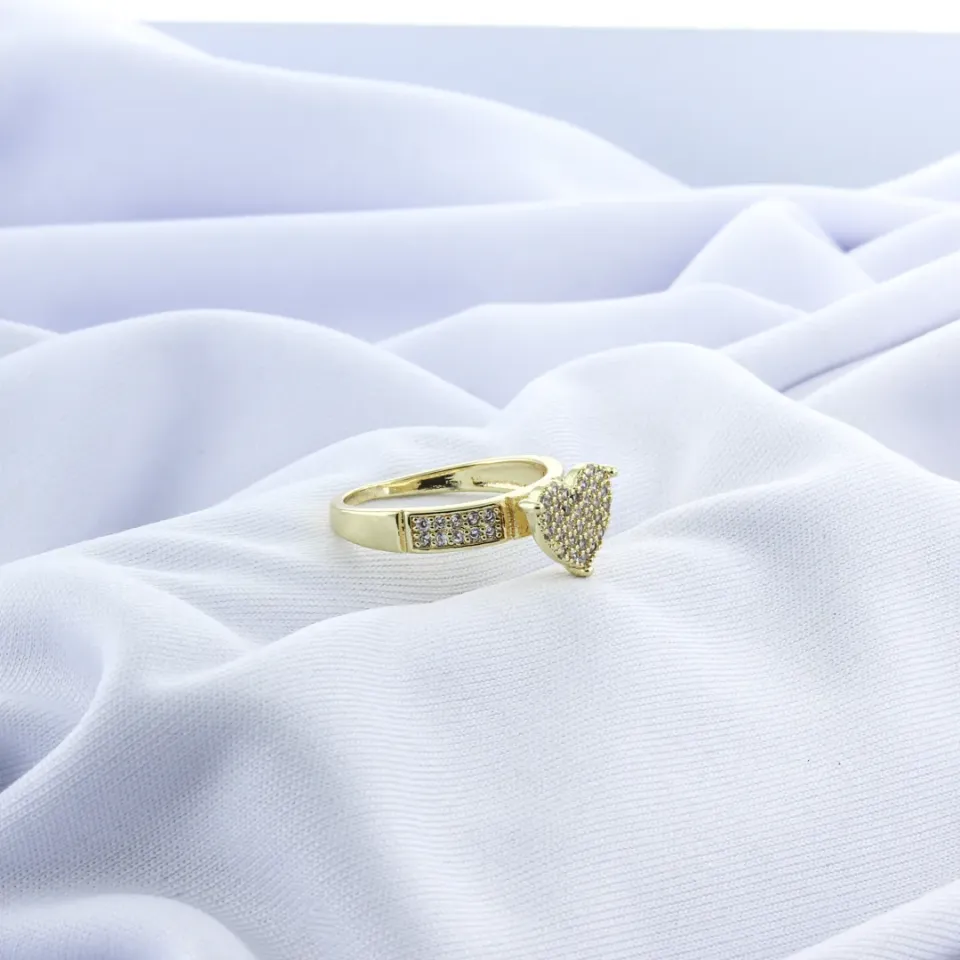 Este encantador anel chuveirinho é uma peça delicada e romântica, projetada para adicionar um toque de brilho e sofisticação ao seu visual. Com um design inspirado no formato de coração e um detalhe de "chuveirinho" de pedras, o anel captura a essência do amor e da elegância de maneira única.