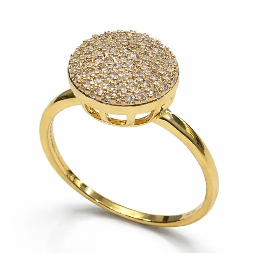 Brilho intenso e elegância em cada detalhe. Este anel apresenta topo redondo totalmente cravejado com microzircônias, criando um efeito luminoso e sofisticado que chama atenção na medida certa.