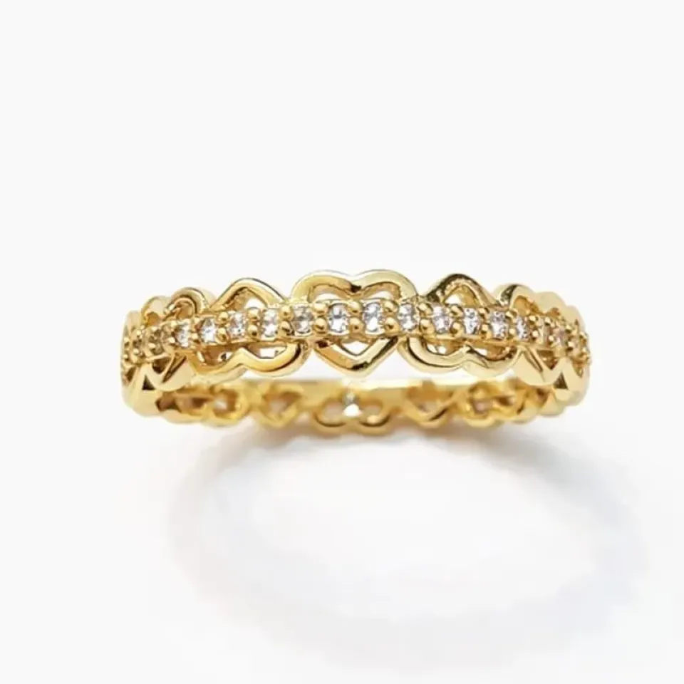 Romântico e cheio de significado, este anel encanta pelo seu design de corações entrelaçados que simbolizam amor e conexão. O detalhe central cravejado com zircônias de alto brilho traz luminosidade e sofisticação à peça, criando um visual delicado e elegante.