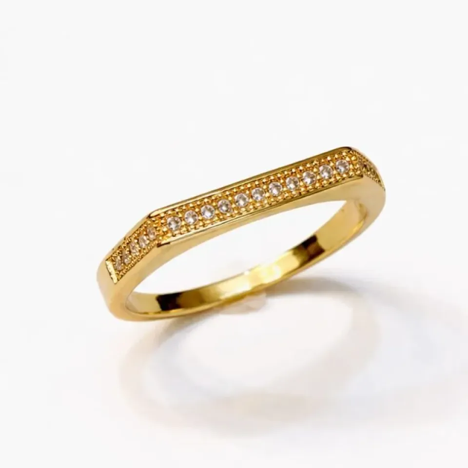 Delicado e sofisticado, o Anel Curvo Cravejado é a escolha perfeita para quem ama brilho na medida certa. Seu design levemente curvado acompanha a linha do dedo com elegância, enquanto as zircônias cravejadas proporcionam um efeito luminoso e refinado.
