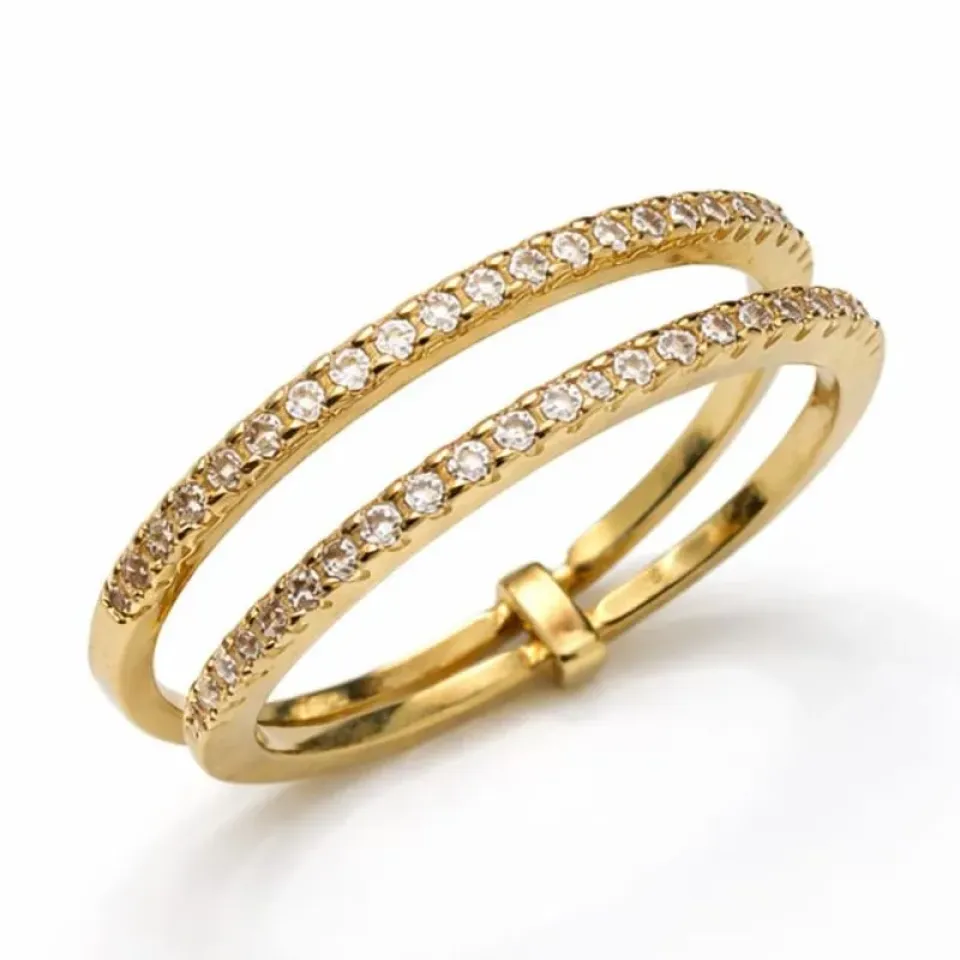 Anel Duplo Cravejado com Zircônias – Diva Exclusiva