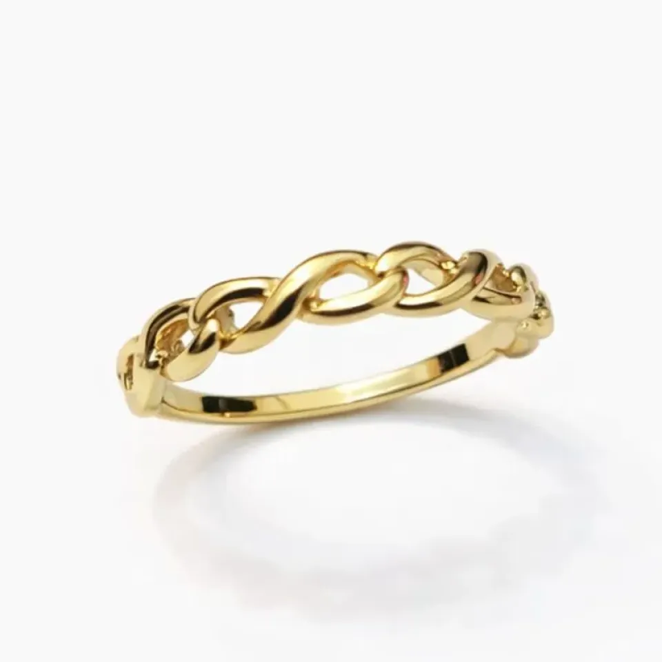 Moderno e sofisticado, este anel traz o charme dos elos entrelaçados em um design elegante e atemporal. Sua proposta minimalista com acabamento polido valoriza a peça, criando um visual delicado, mas cheio de personalidade.