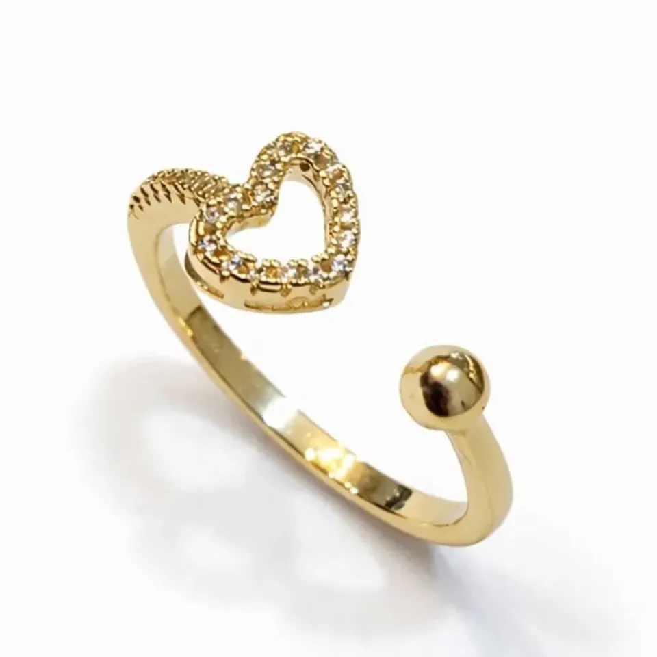 FECHARAnel Coração Vazado com Zircônias – Semijoia Premium