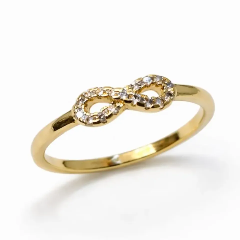 Um símbolo de amor eterno transformado em joia. O anel infinito vazado traz um design delicado e sofisticado, realçado por micro zircônias que proporcionam um brilho sutil e elegante na medida certa.