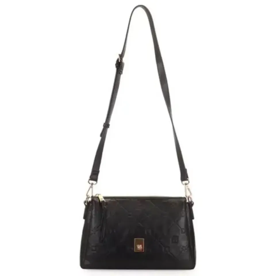 XBolsa Transversal Média Monograma Relevo WJ Preta – Moderna e Versátil.