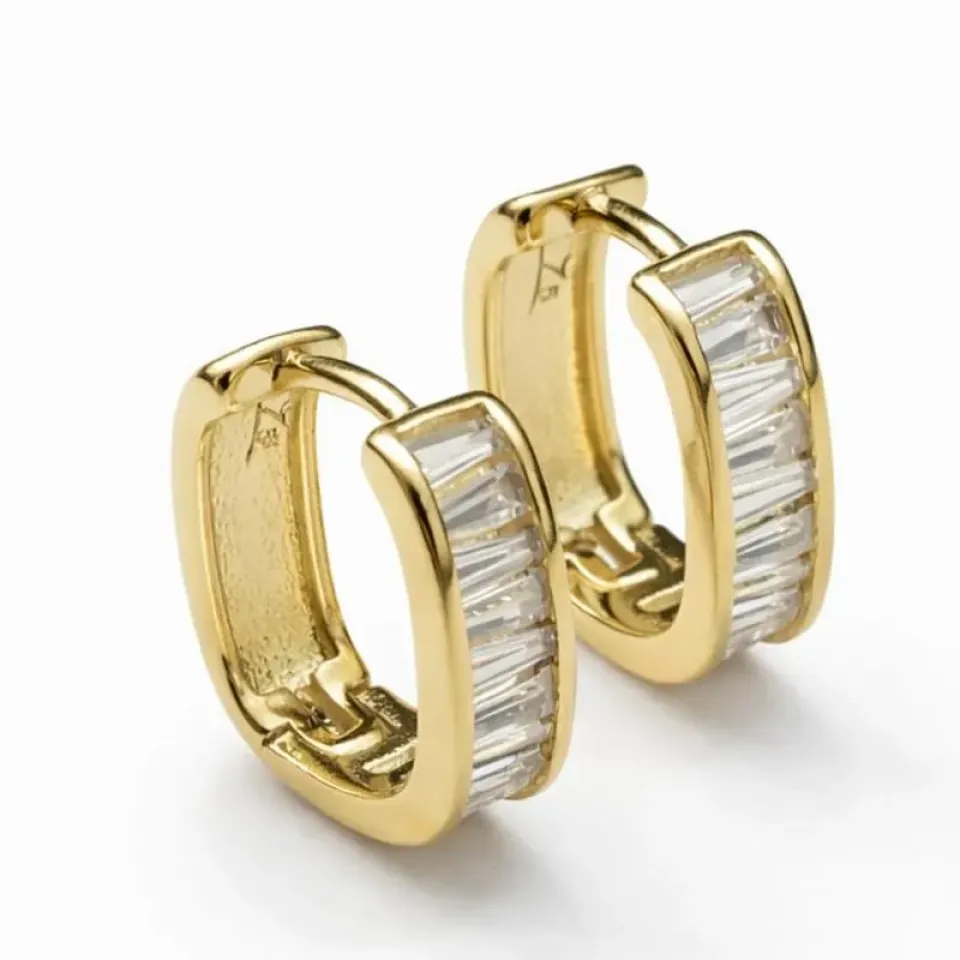 Brinco Argolinha Retangular com Zircônias BagueteConfira opiniões e avaliações de clientes!