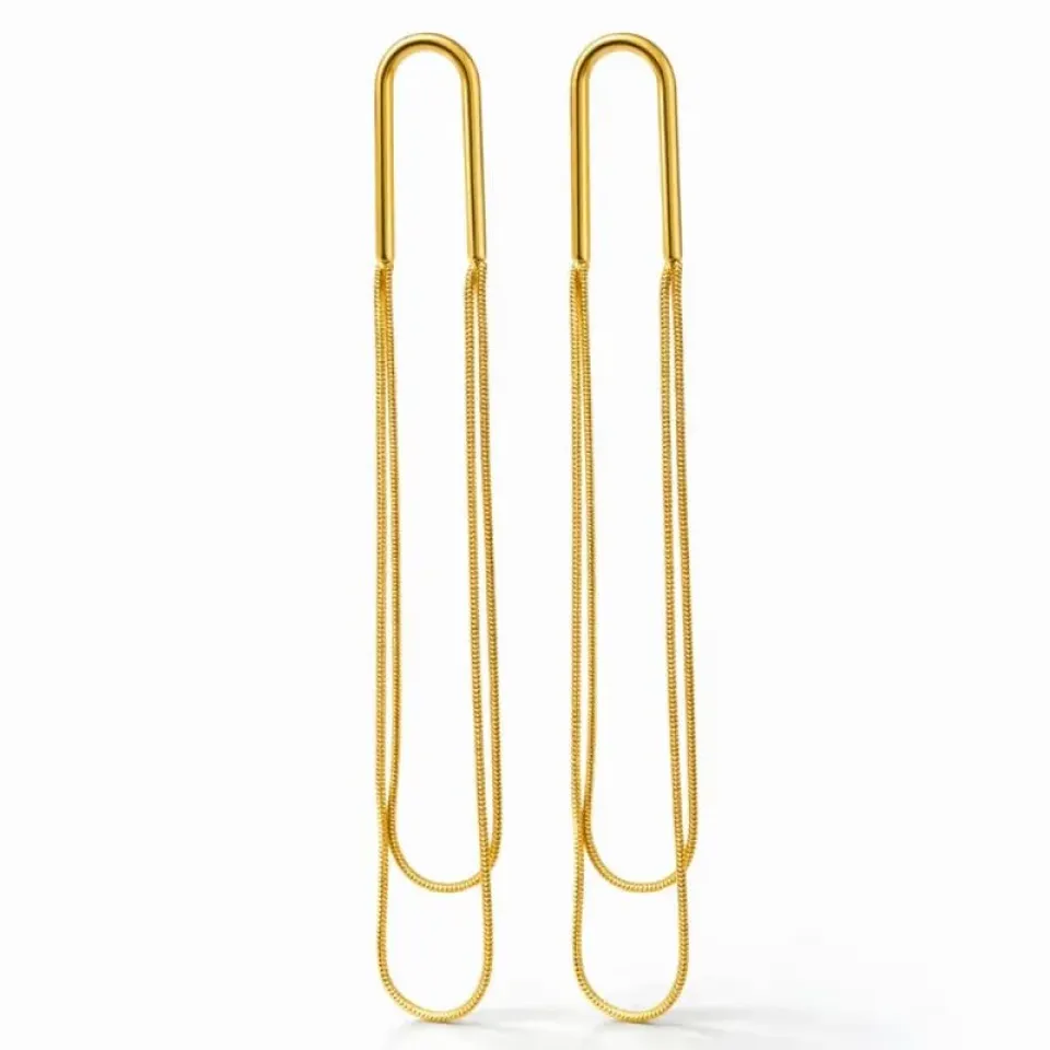 Elegante e moderno, este brinco longo é a escolha perfeita para quem ama peças sofisticadas com um toque contemporâneo. Seu design minimalista com haste em formato alongado e corrente delicada cria um movimento leve e alonga a silhueta, valorizando o visual com muita classe.