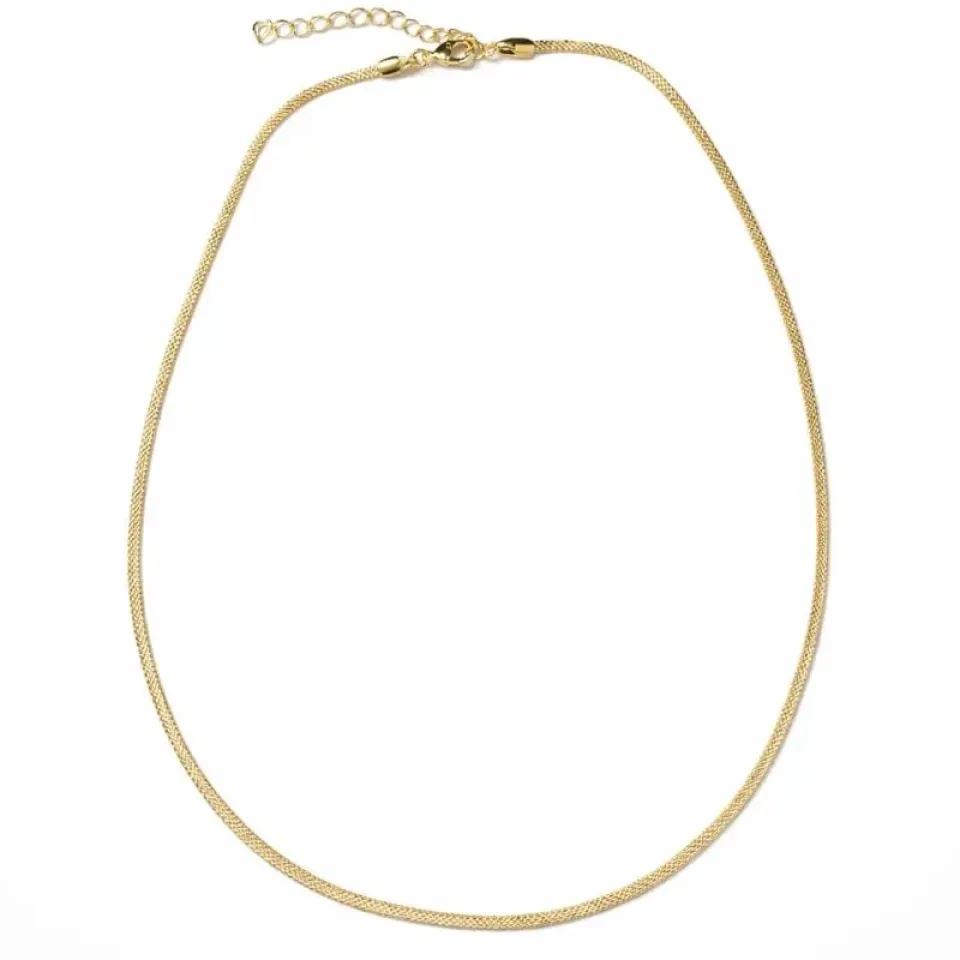 Delicada e versátil, a corrente laminada lisa é aquela peça coringa que não pode faltar no seu porta-joias. Com acabamento polido e brilho sofisticado, ela valoriza qualquer produção — perfeita para usar sozinha, em mix de colares ou como base para seus pingentes favoritos.