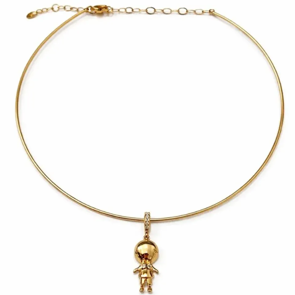 Um colar delicado e cheio de significado, perfeito para representar o amor entre mãe e filho. O Colar Filho Menino no Aro com Zircônias traz um lindo pingente de menino dentro de um aro, com detalhes em zircônias que garantem um brilho sofisticado e encantador.