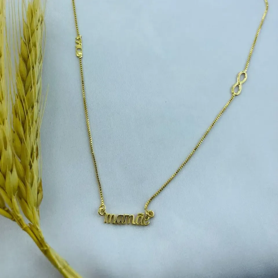 A joia é complementada por dois outros pingentes, um com a palavra "Amor" e o outro com o símbolo do infinito, representando a continuidade e a intensidade desse sentimento incondicional. A combinação de palavras e símbolos cria uma narrativa emocional, transformando este colar em uma peça que vai além da beleza, sendo um verdadeiro tributo ao vínculo eterno entre mãe e seus entes queridos.