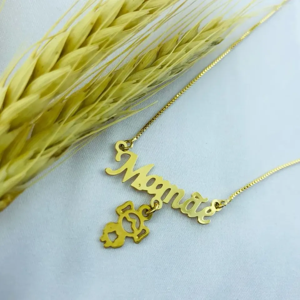 Este colar banhado a ouro 18k apresenta uma elegante corrente veneziana, que confere um toque de sofisticação e brilho à peça. O design é composto por dois pingentes especiais: um com a palavra "Mamãe", delicadamente gravada, e outro com o formato de uma filha, simbolizando a conexão única e afetuosa entre mãe e filha. A combinação dos pingentes cria uma peça cheia de significado e carinho, ideal para quem deseja expressar amor e apreço de uma forma elegante. Com seu acabamento em ouro 18k, este colar é perfeito para presentear em datas especiais ou para usar no dia a dia, trazendo um charme atemporal e simbólico.