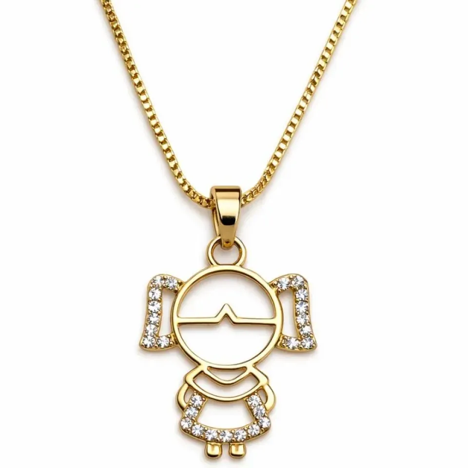 Um colar delicado e cheio de significado, perfeito para representar o amor por uma filha. O pingente em formato de menina possui detalhes cravejados com micro zircônias, trazendo brilho e elegância à peça, enquanto o design moderno deixa o acessório ainda mais especial.