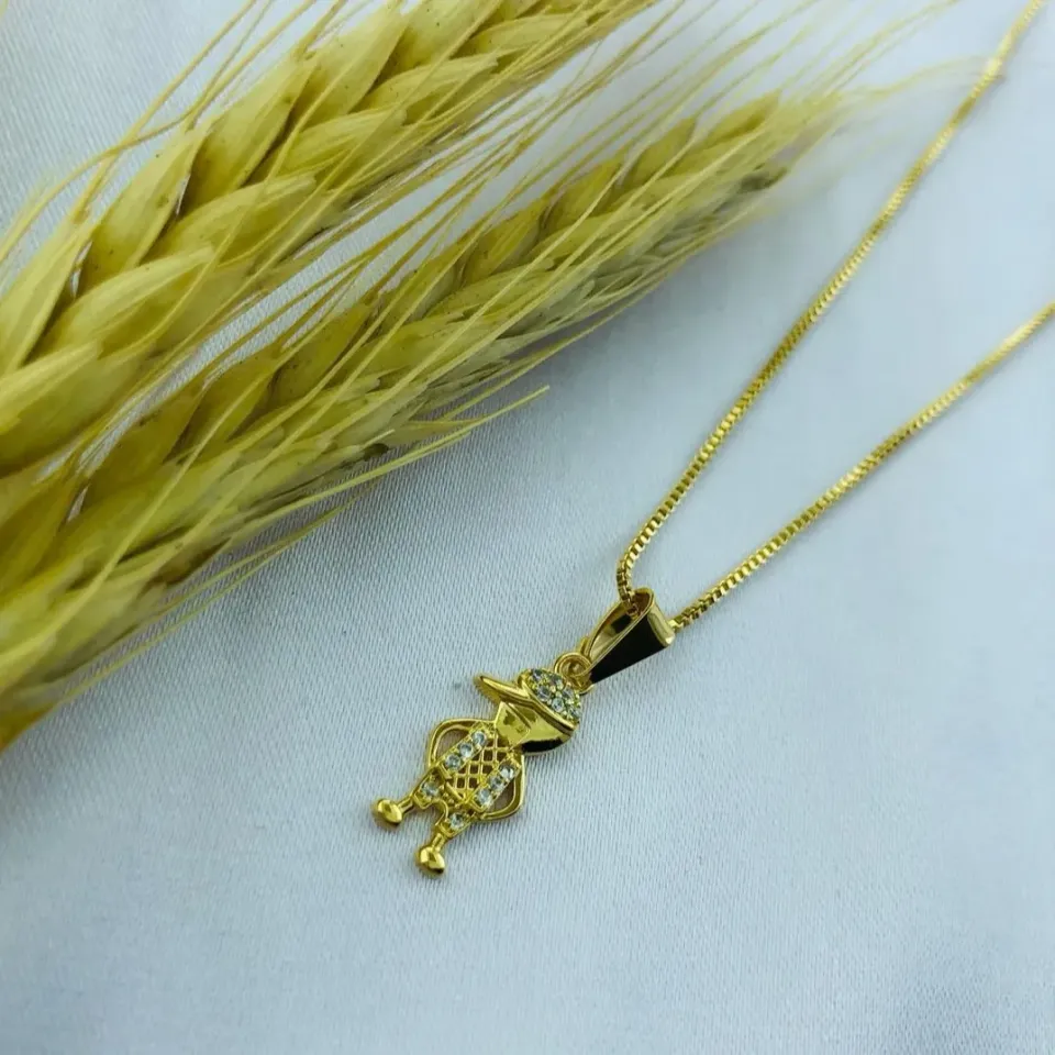 Colar Corrente Veneziana Banhada a Ouro 18K com Pingente de Filho Cravejado em Zircônias