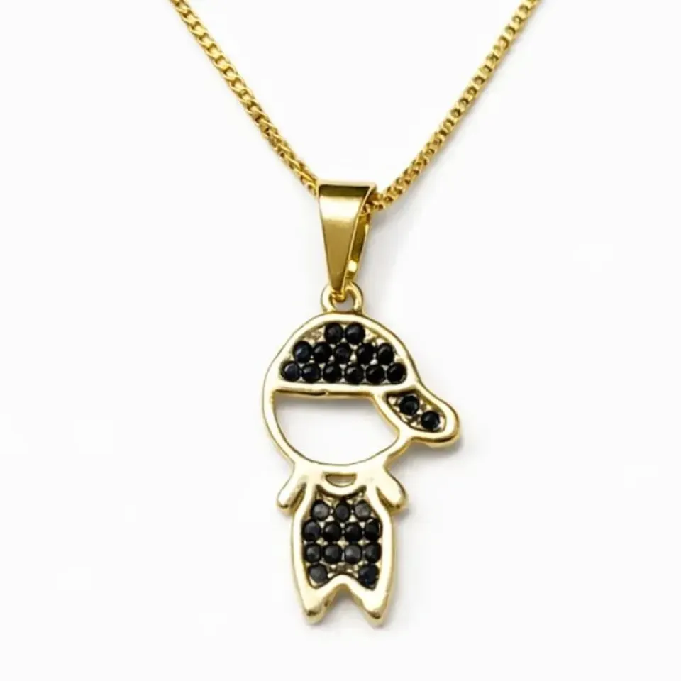 Colar Menino com Boné e Pedras PretasConfira opiniões e avaliações de clientes!