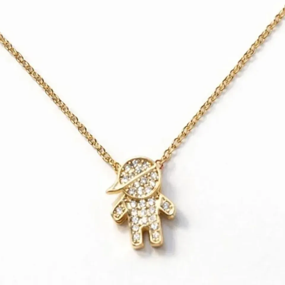Um colar cheio de significado e brilho para representar quem você ama. O pingente em formato de menino é totalmente cravejado, trazendo um acabamento delicado e sofisticado que ilumina qualquer produção.