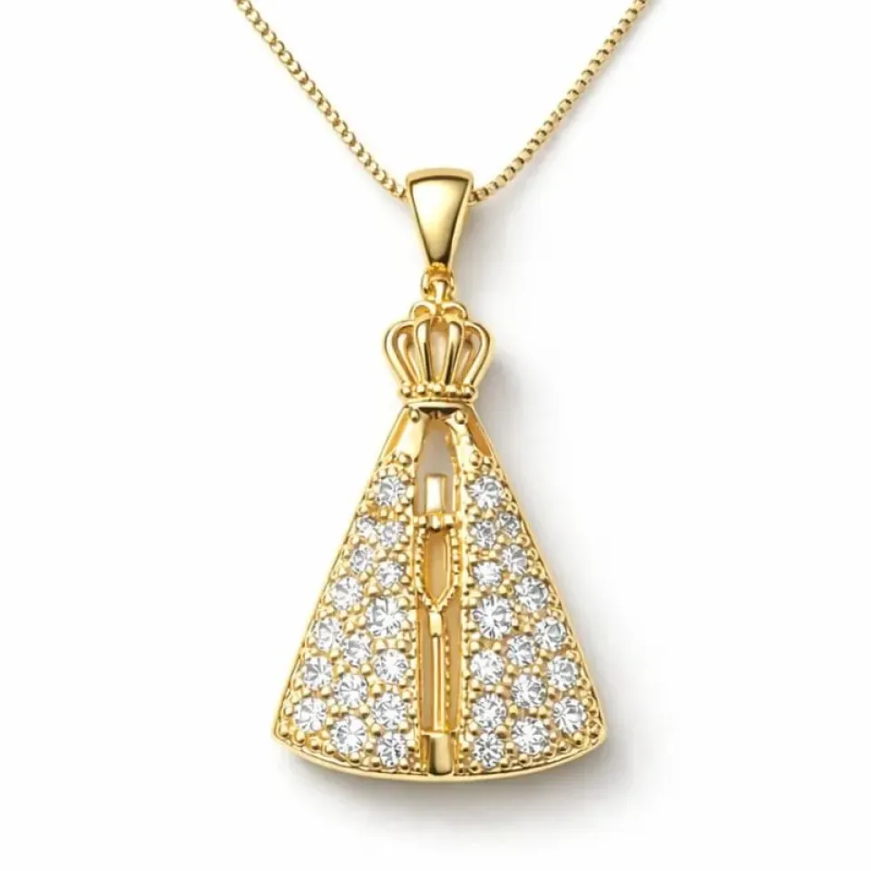 O pingente de Nossa Senhora Aparecida traz um design clássico e significativo, ideal para quem deseja carregar sua fé com elegância.