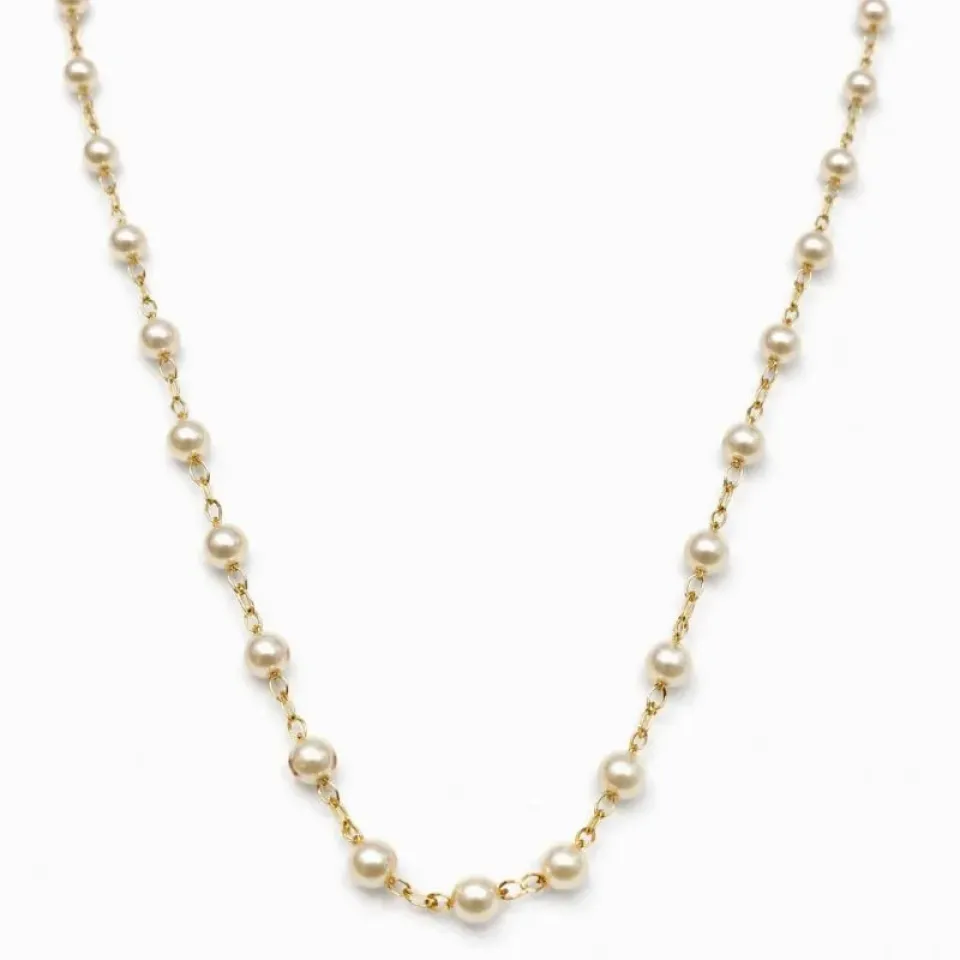 Um colar elegante e atemporal, composto por delicadas pérolas distribuídas ao longo da corrente, trazendo sofisticação e leveza para qualquer produção. Seu design moderno valoriza o colo e cria um visual feminino e refinado.