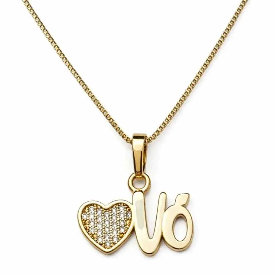 Um colar delicado e cheio de significado, perfeito para representar o amor especial entre avó e netos. O pingente traz a palavra “Vó” acompanhada de um delicado coração cravejado com zircônias, proporcionando brilho e elegância à peça.