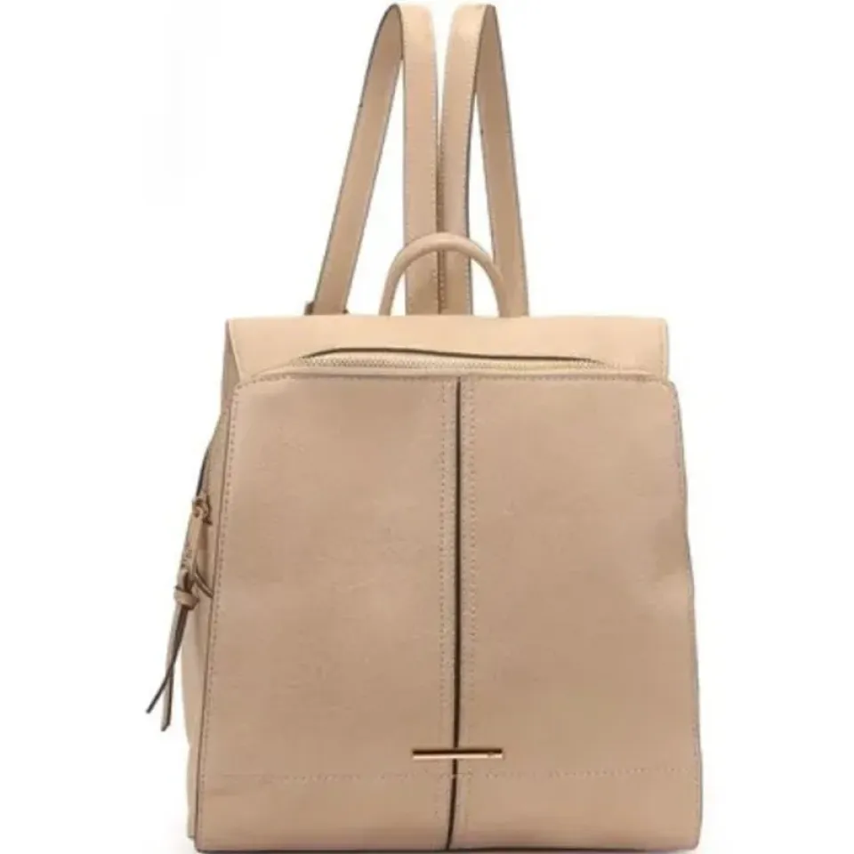 FECHARMochila Média Detalhes Costuras Bege – Moderna e Sofisticada.