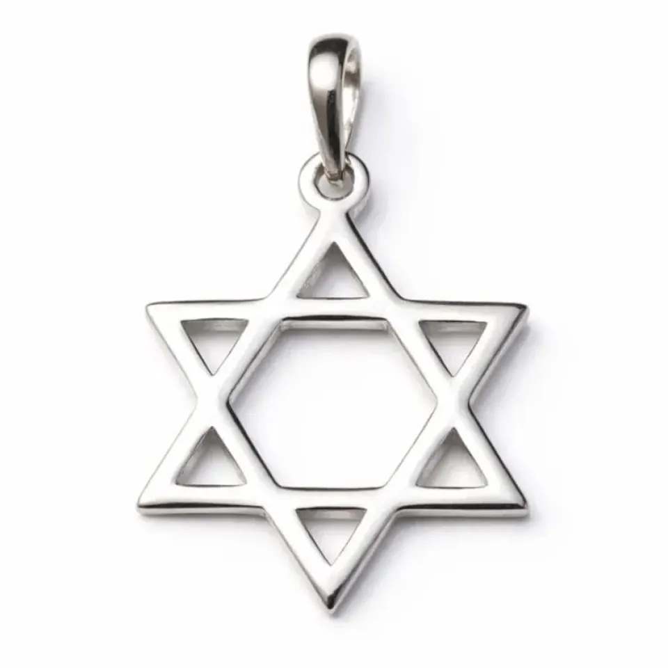 Clássico e cheio de simbolismo, este pingente em prata 925 traz a Estrela de Davi, representando proteção, espiritualidade e conexão com a fé.