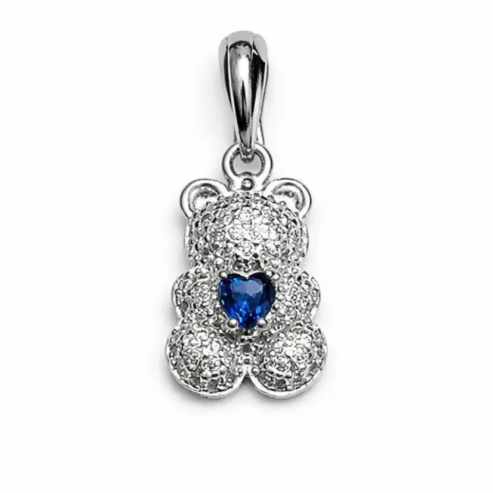 Um pingente apaixonante, perfeito para quem ama joias delicadas e cheias de charme. O modelo de ursinho traz um design encantador, todo cravejado com zircônias, com destaque para o coração em tom azul, que adiciona um toque especial de brilho e sofisticação.