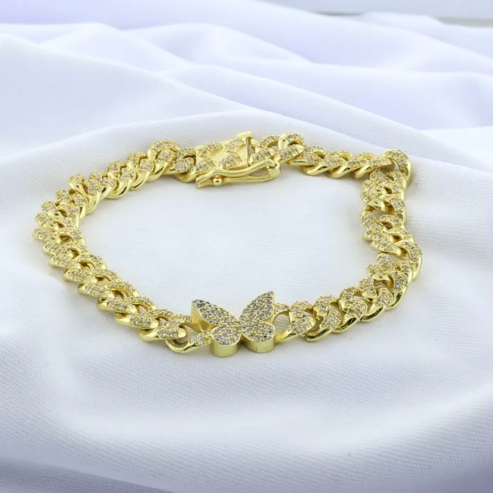 dicione um toque de elegância e charme ao seu estilo com esta sofisticada pulseira, que combina o design clássico dos elos grumet com o detalhe encantador de uma borboleta cravejada. A pulseira é composta por elos grumet robustos e brilhantes, proporcionando uma base sólida e moderna que realça a beleza do acessório. O destaque fica por conta do pingente de borboleta, meticulosamente cravejado com pedras brilhantes que capturam a luz de maneira deslumbrante, trazendo um toque de feminilidade e sofisticação. Ideal para complementar qualquer look, desde o casual ao formal, esta pulseira é uma escolha perfeita para quem aprecia a fusão de design clássico e detalhes encantadores.