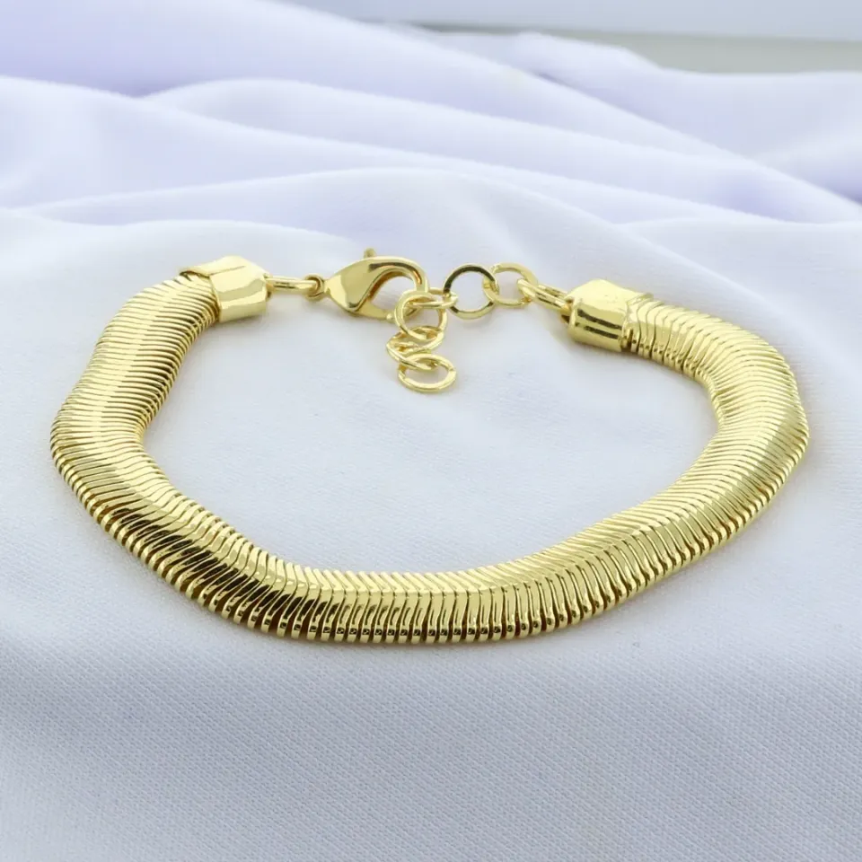 Destaque-se com a pulseira de malha grossa, um acessório que combina robustez e estilo moderno. Esta peça apresenta uma malha grande e sólida, criando um visual marcante e imponente. A textura distinta da malha grossa oferece um brilho sutil e um toque de sofisticação, enquanto a construção sólida garante durabilidade e conforto. Ideal para adicionar um elemento de impacto ao seu visual, a pulseira de malha grossa é perfeita para complementar tanto looks casuais quanto formais, oferecendo uma presença elegante e contemporânea. Seu design versátil faz dela uma escolha excelente para quem busca um acessório que une estilo e substância.