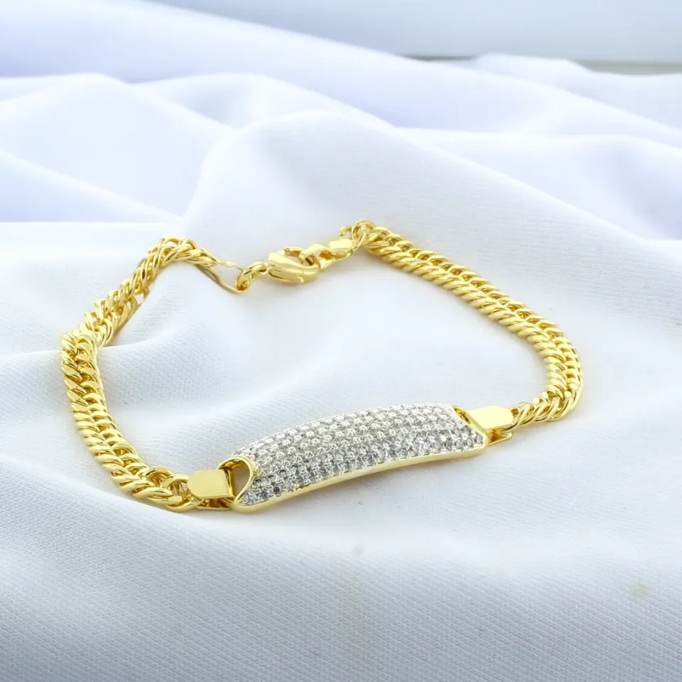 Adicione um toque de glamour e sofisticação ao seu estilo com esta pulseira elegante, que apresenta uma placa meticulosamente cravejada de zircônias cristal. A placa central exibe um design deslumbrante, com zircônias brilhantes, criando um efeito visual fascinante que captura a luz de maneira espetacular. O acabamento refinado e a construção delicada da pulseira garantem conforto e durabilidade, tornando-a perfeita tanto para ocasiões especiais quanto para uso diário. Este acessório é ideal para quem busca um toque de luxo e elegância, oferecendo um brilho sofisticado e uma peça versátil que realça qualquer look.