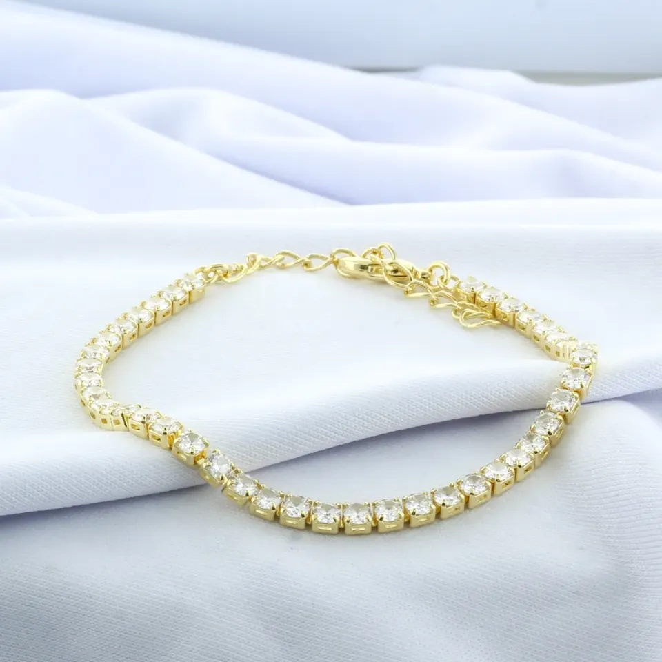 A pulseira Riviera Redondinha é um acessório refinado que combina o estilo contínuo da Riviera com um design de pedras em formato redondo, criando um brilho uniforme e sofisticado. Ideal para adicionar um toque de glamour a qualquer look, seja para eventos especiais ou para o uso diário.