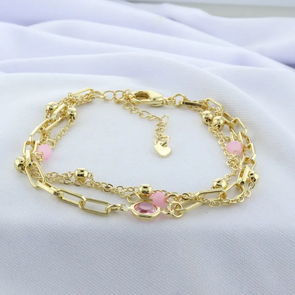 PULSEIRA TRIPLA PEDRAS ROSAConfira opiniões e avaliações de clientes!