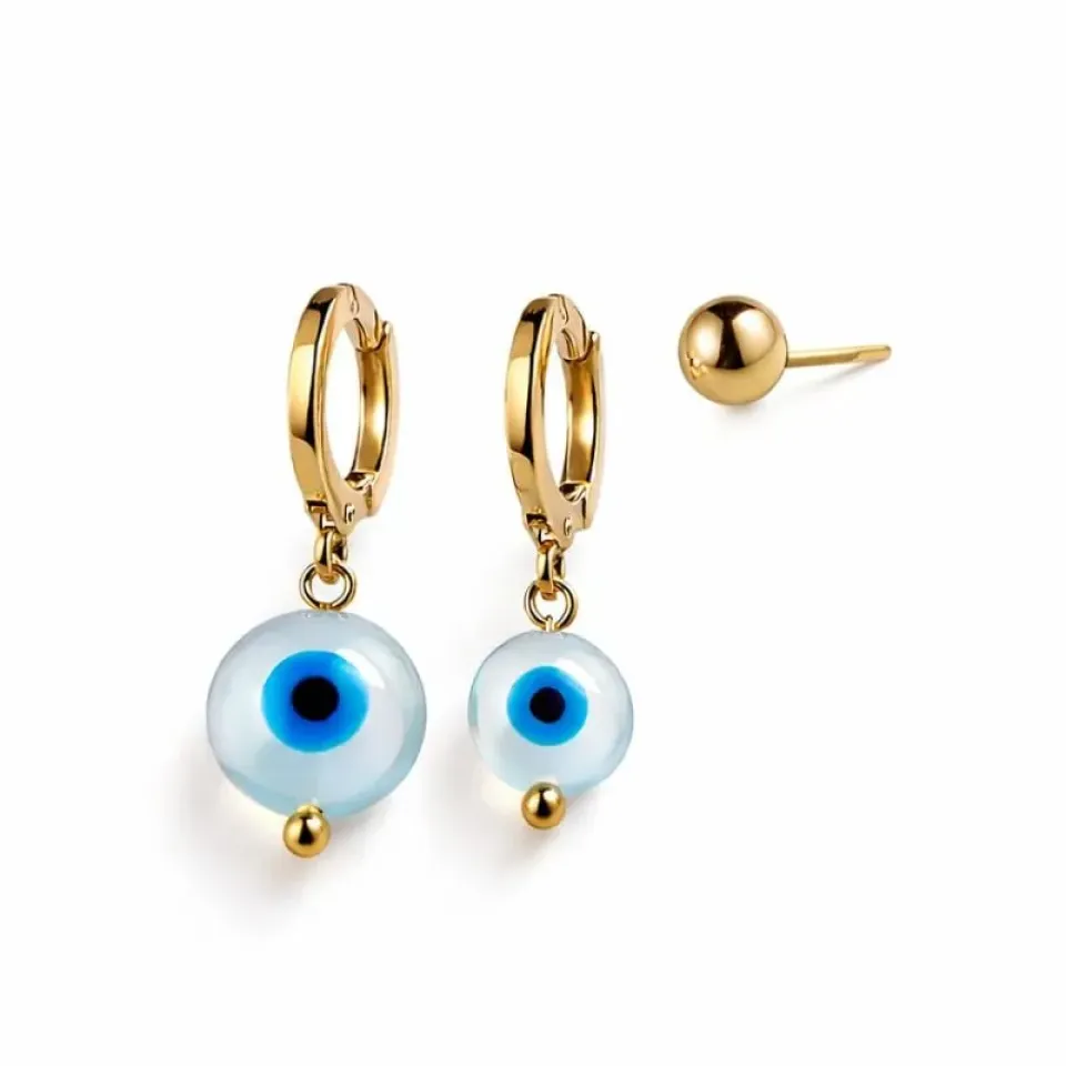 Trio de Brincos Olho Grego DouradoConfira opiniões e avaliações de clientes!